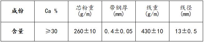 將金屬鈣與一定比例的鐵粉混合包覆制成。由25-35%鈣粒,其余為鐵粉組成的混合物為芯粉材料,以帶鋼包裹制成的包芯線。主要作煉鋼過程的脫氧、脫硫劑;